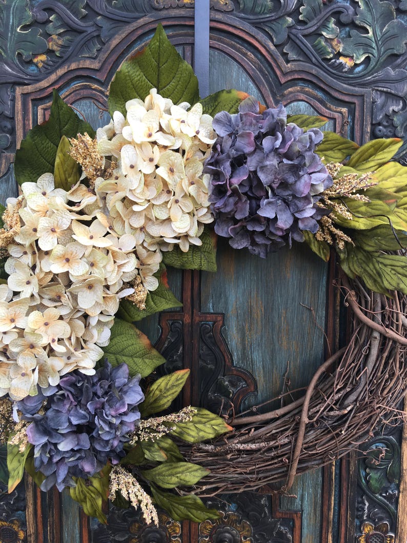 Floral Wreath Hydrangea Wreath Grapevine Wreath Spring Etsy