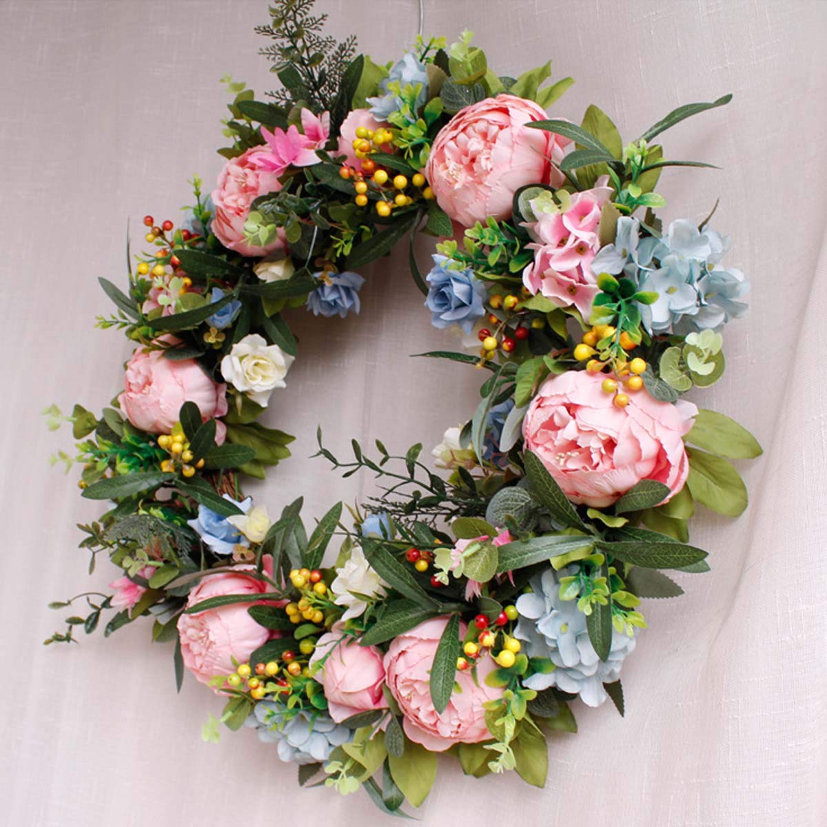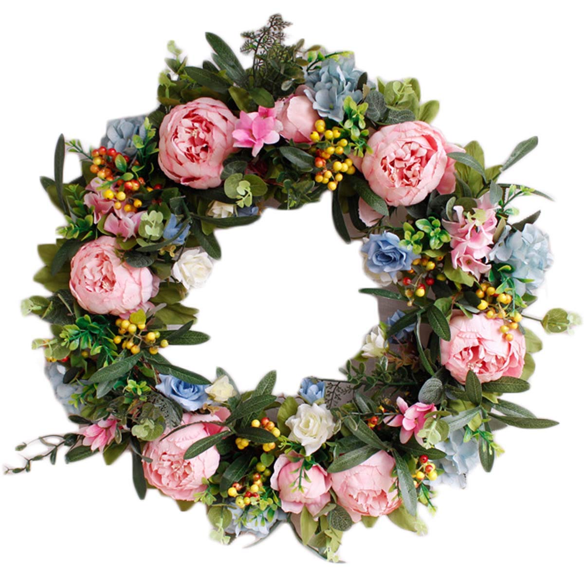 Pauwer 22 Large Pink Peony Flower Wreath With Blue Hydrangeas
