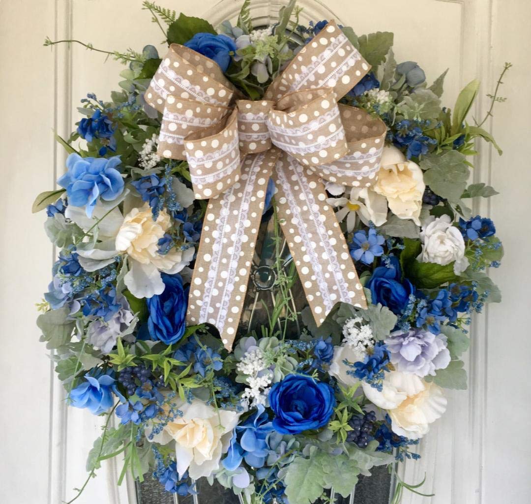 Hydrangea Wreath Outdoor Wreath White Rose Wreath Blue