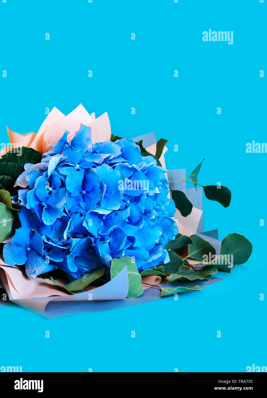 Bouquet Blue Hydrangea On A Blue Background Wedding Flowers Or