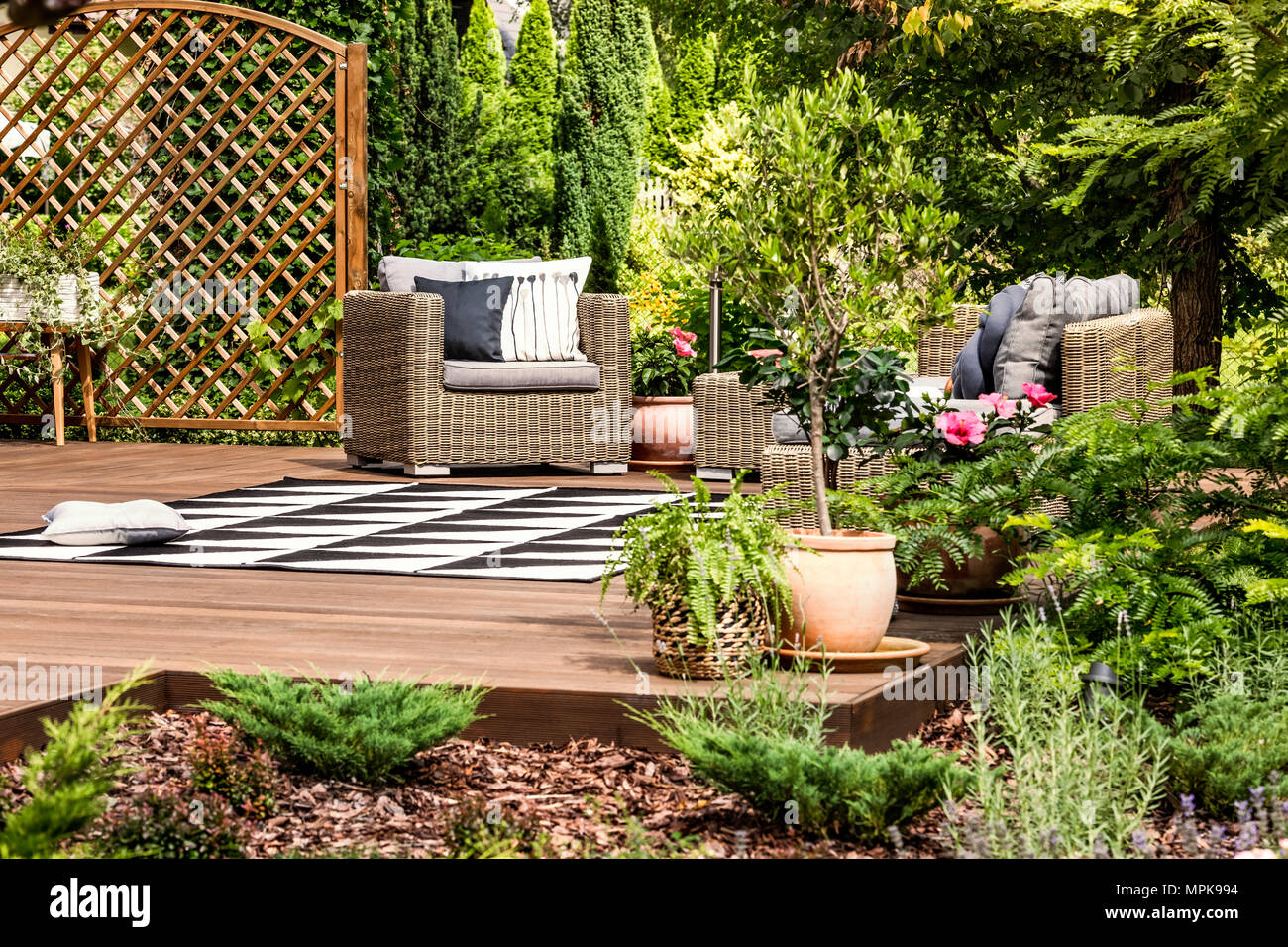 Vimini Mobili Da Giardino Su Una Terrazza Decorata Con Piante E
