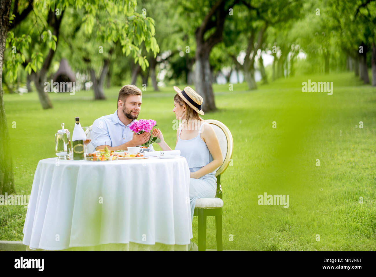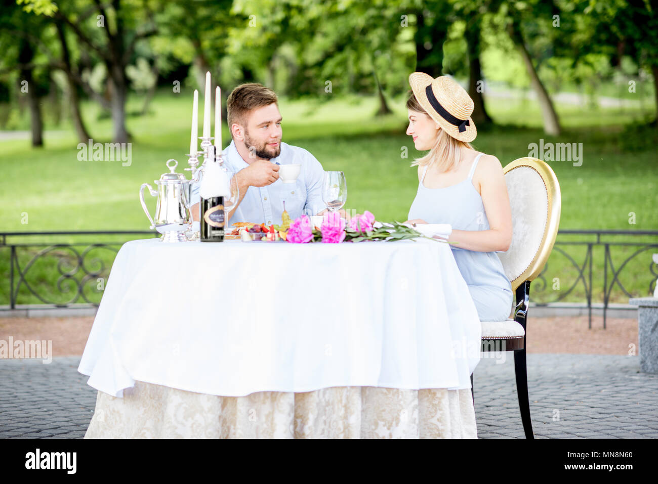 Prima Colazione Romantica In Un Giardino Immagine Stock Immagine
