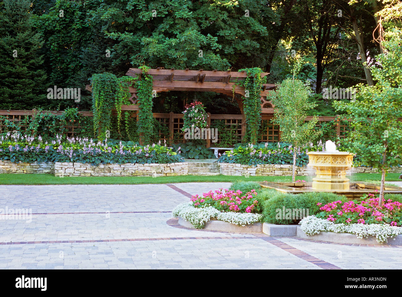 Legno Arbor Fontana E Mattone Vialetto Di Casa Di Lusso Hosta