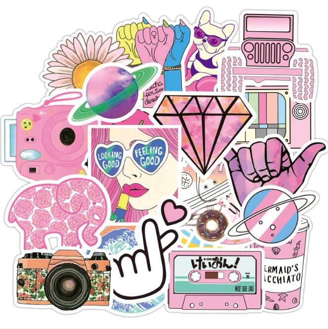 Gadget1 50 Pcs Pink Cute Girl Vsco Stickers For Luggage Laptop