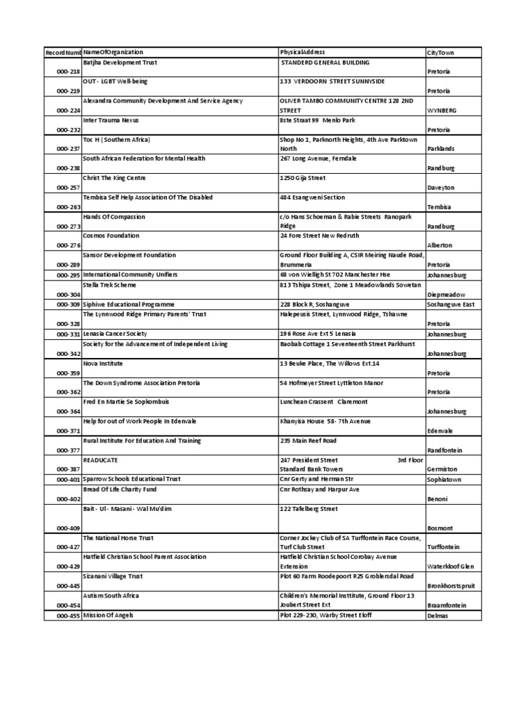 Registered Npos In Gauteng Johannesburg South Africa Free 30