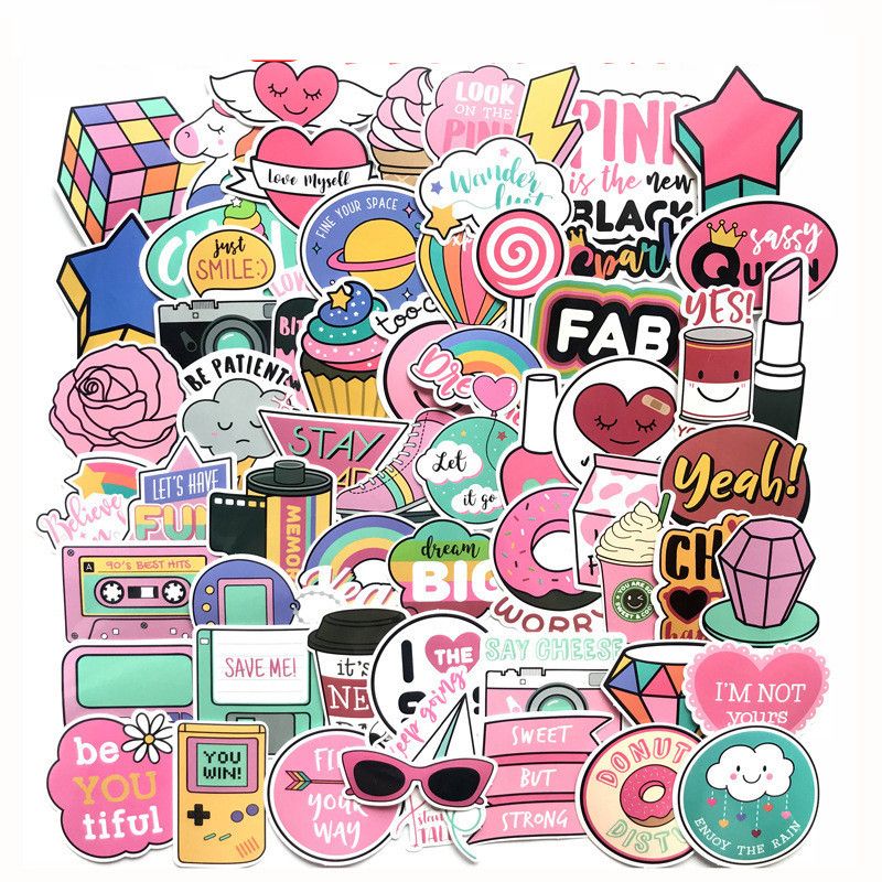 46pcs Box Fashion Lovely Girls Kawaii Pink Fun Sticker Toys