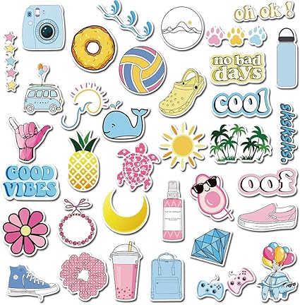 Cute Vsco Stickers For Water Bottles 35 Pcs Waterproof Aesthetic