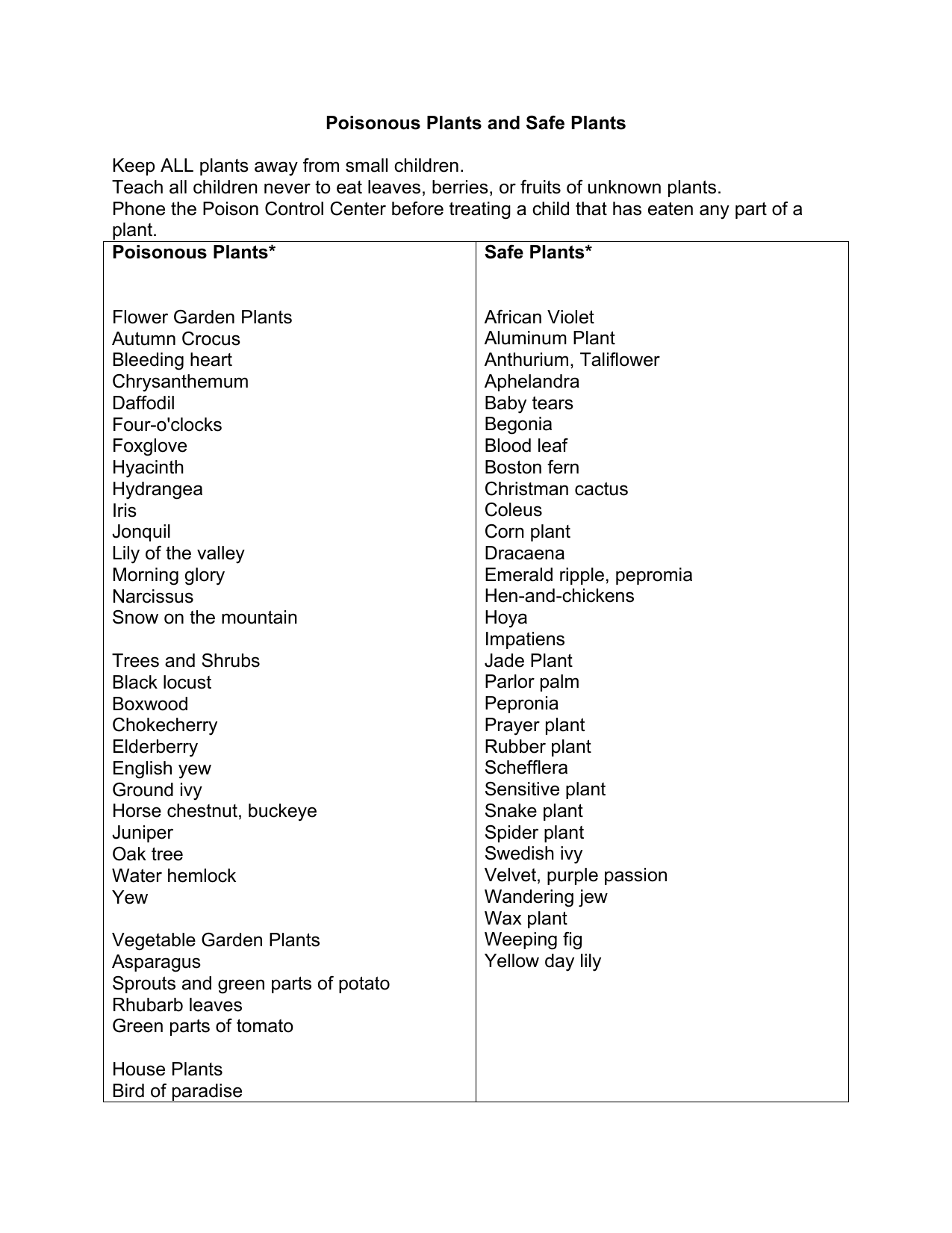 Poisonous Plants And Safe Plants Keep All Plants Away From Small
