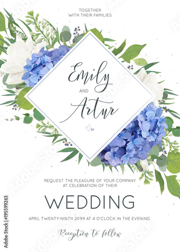 Vector Floral Card Design With Tender Bouquet Of Blue Hydrangea
