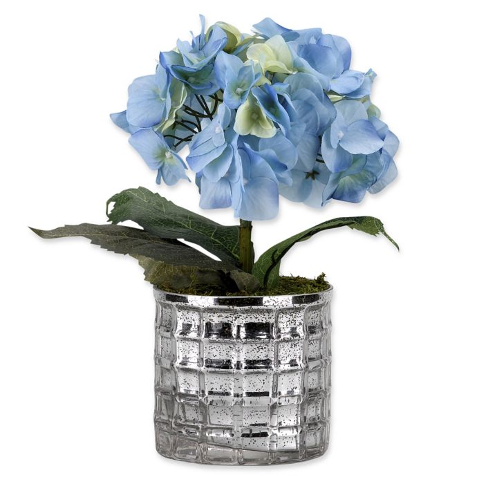 D W Silks Blue Hydrangeas In Silver Mirrored Glass Vase Bed Bath