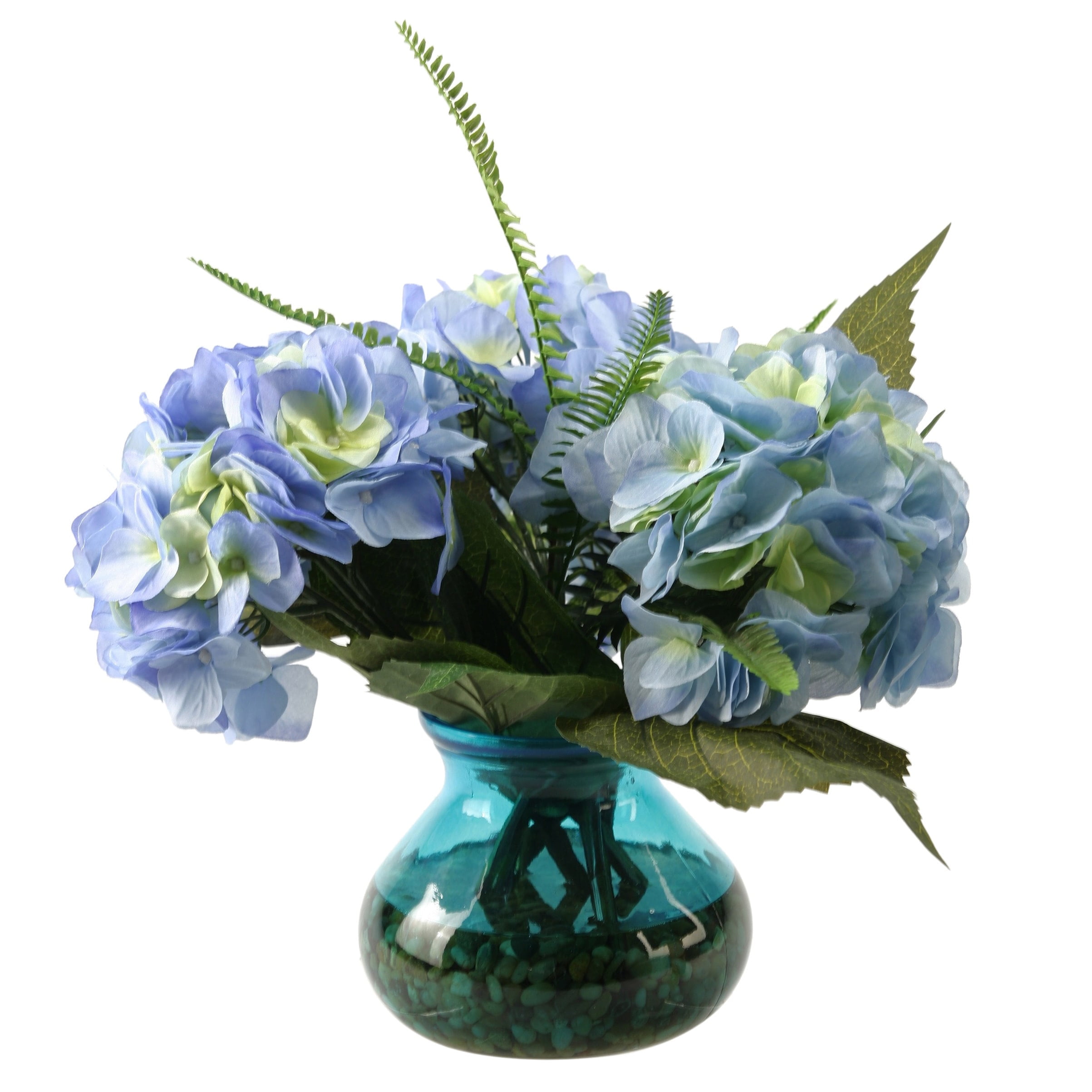 Get Glass Vase Blue Hydrangea Silk Flower Arrangement