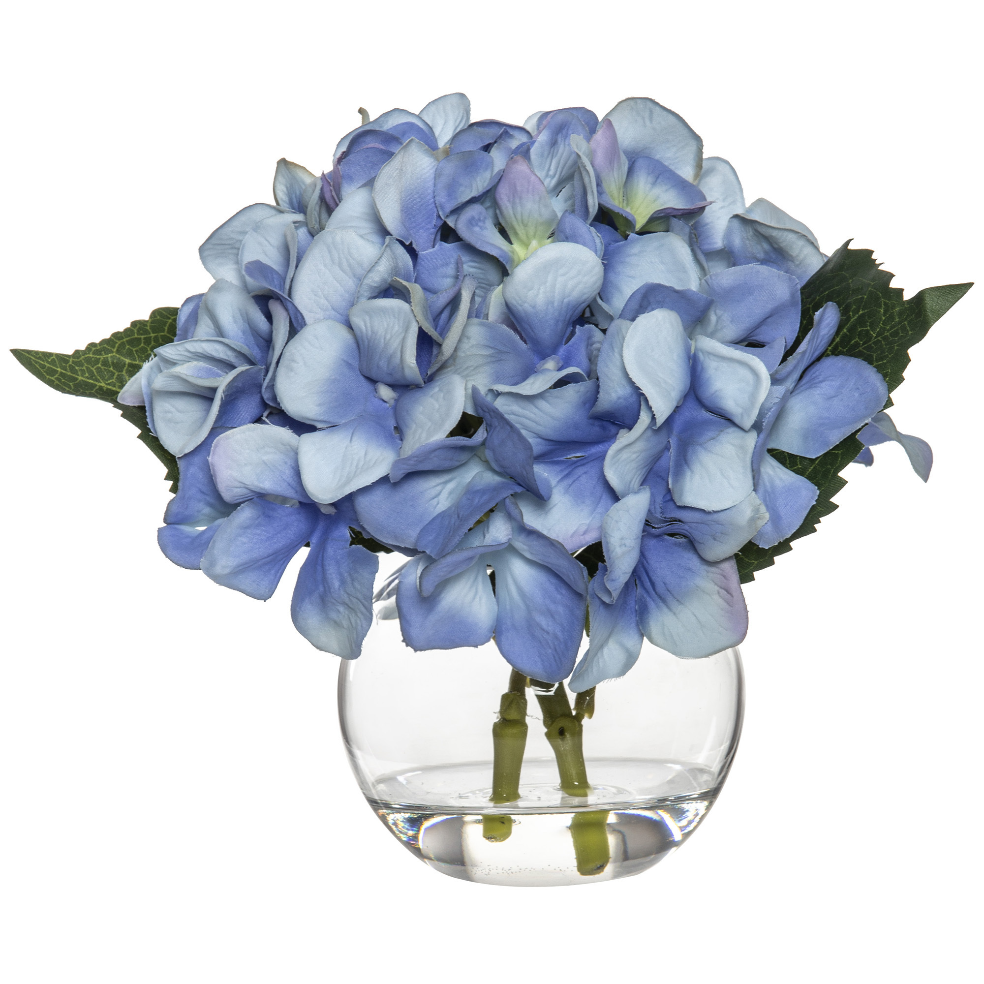 August Grove Hydrangeas Floral Arrangement In Glass Vase Reviews