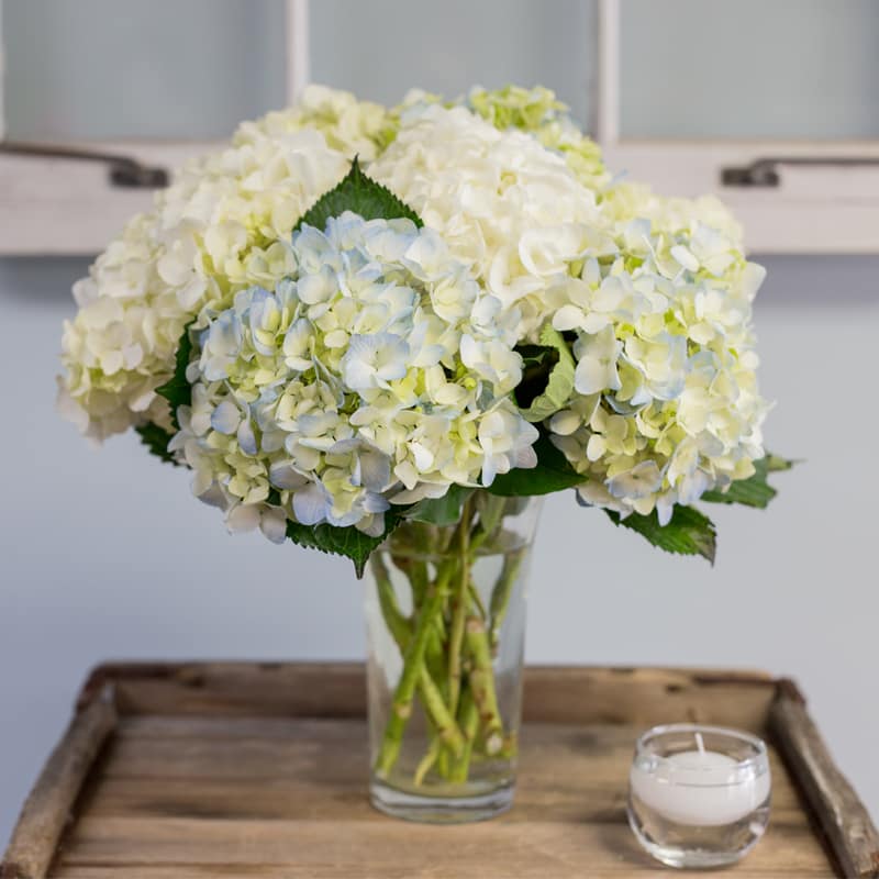 Find The Best Deals On Blue Hydrangeas In A Medium Tall Glass Vase