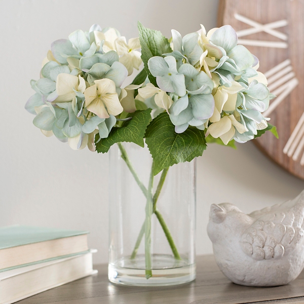 Winward Faux Flowers Blue Hydrangea In Glass Cylinder Vase Dillard S