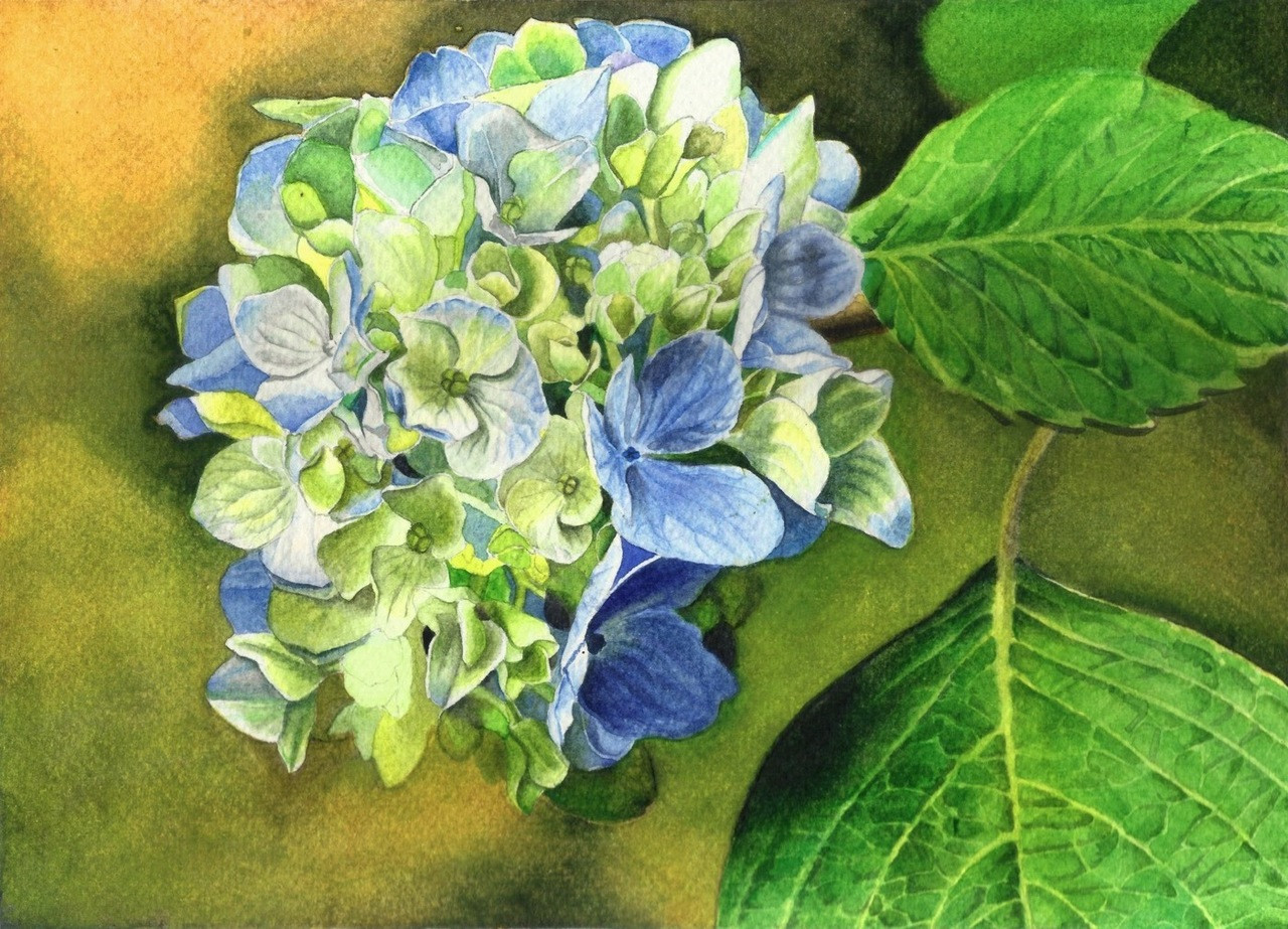 Blue Hydrangea Blaue Hortensie Aquarellgemalde Watercolor