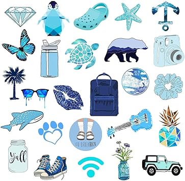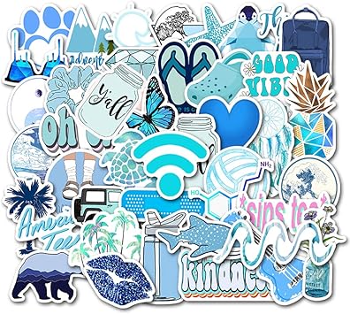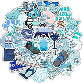 Amazon Com Cute Blue Vsco Stickers For Water Bottle 50pcs Ins