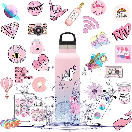 Amazon Com Cute Stickers For Water Bottle Girls Pink Vinyl Decal
