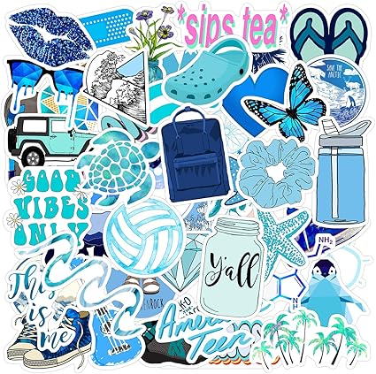 Amazon Com Blue Vsco Stickers For Water Bottles 50 Pcs Hydro