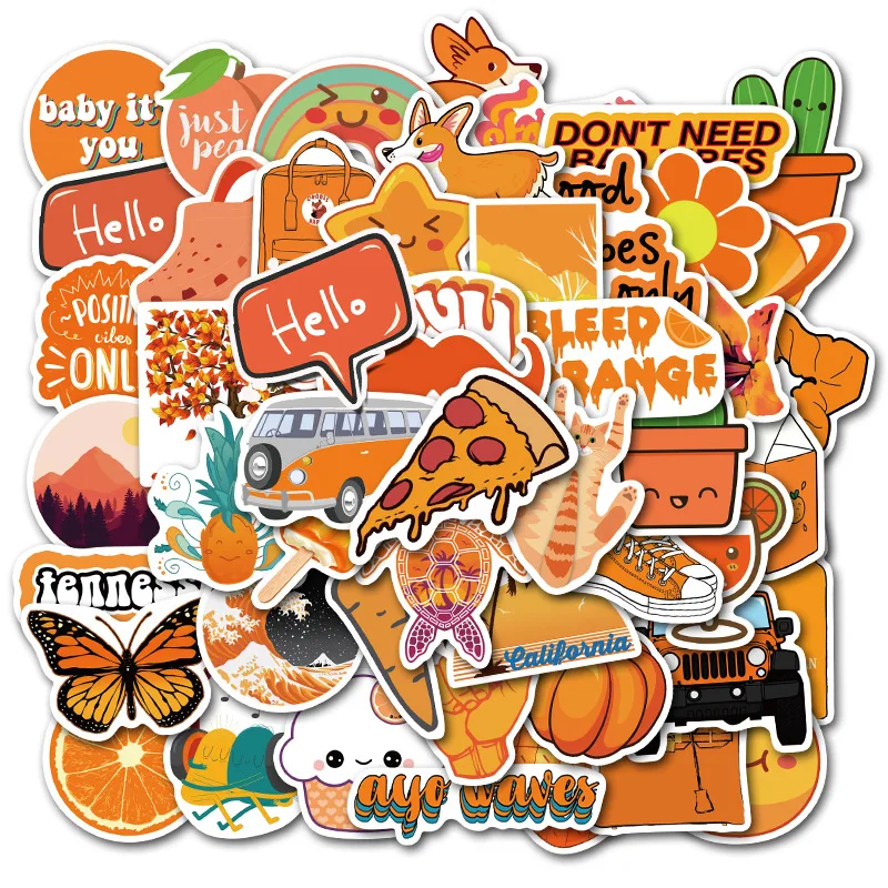 50 Pcs Orange Cute Vsco Sticker For Laptop Bicycle Fridge
