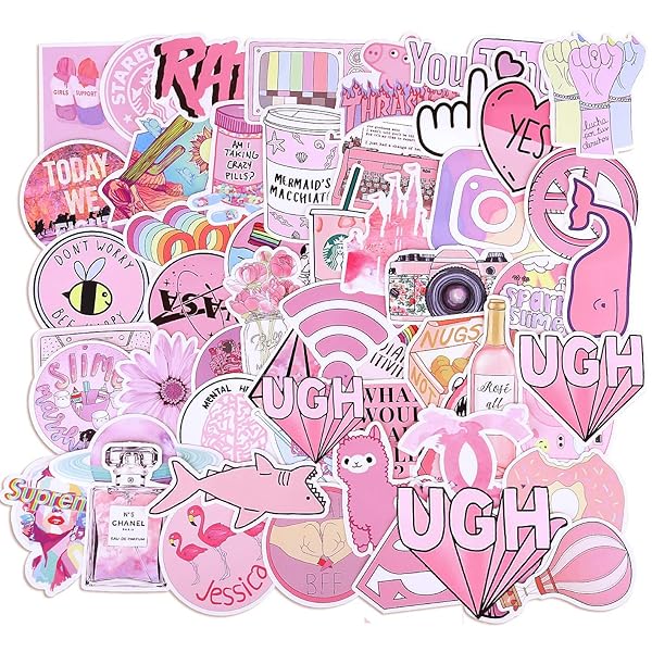 Cute Vsco Stickers For Water Bottles 53 Pcs Random Pink Vinyl