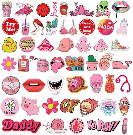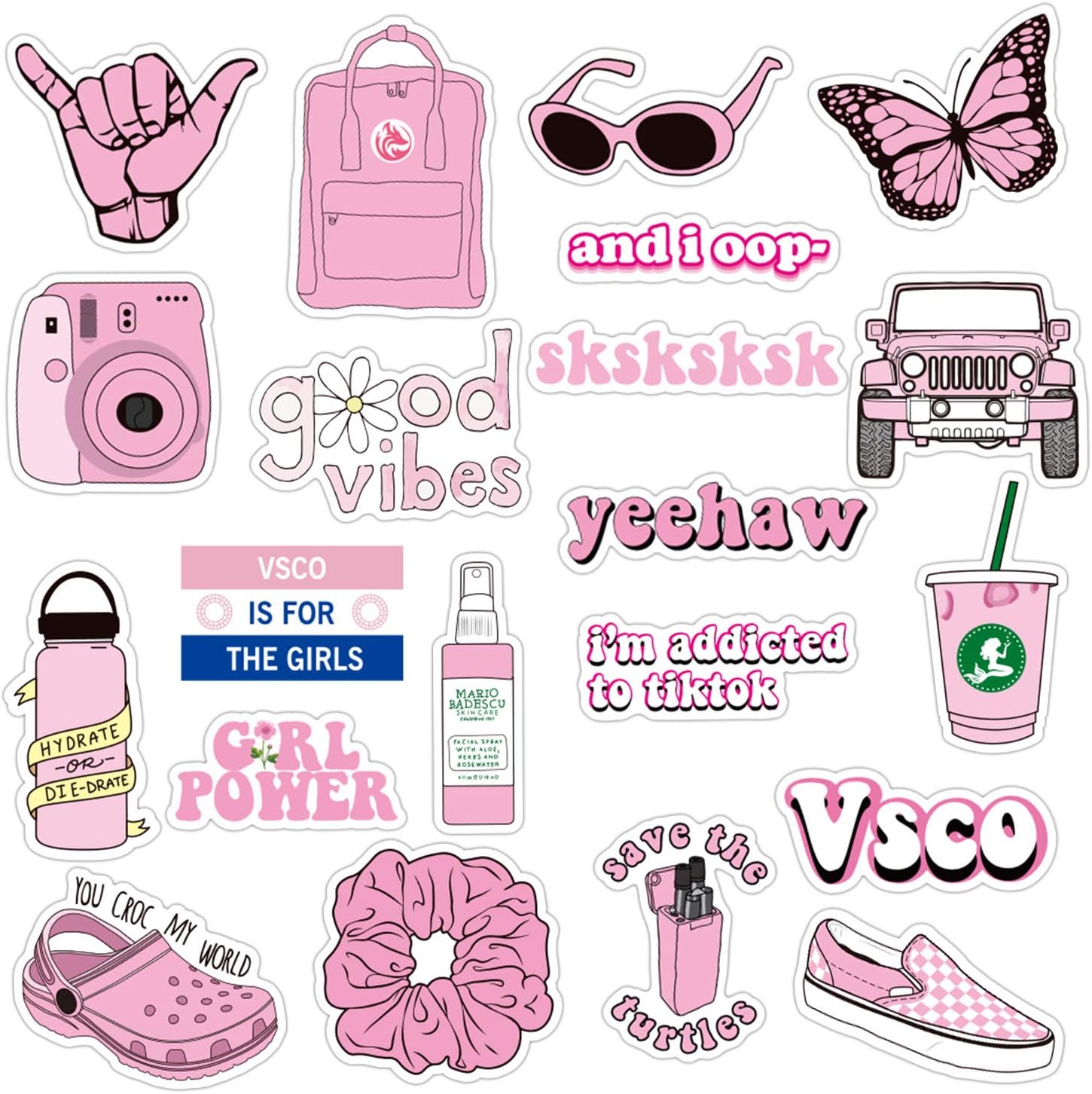 50pcs Vsco Girl Cute Stickers Water Bottle Pink Vinyl Decals