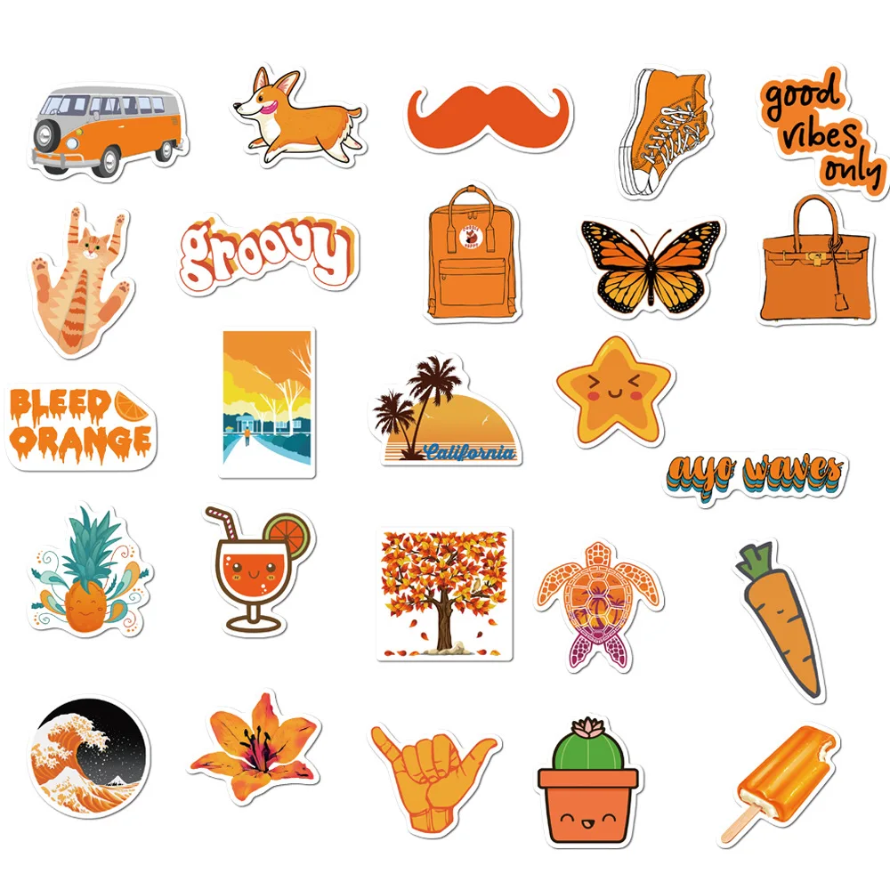 50pcs Pack Orange Vsco Sticker Waterproof Girl Graffiti Stickers