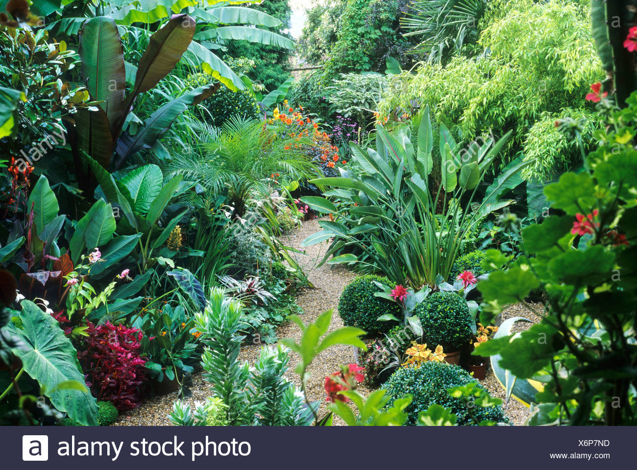 Immagini Stock Minimal Giardino Con Varieta Di Piante Tropicali