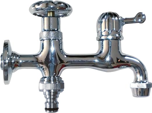 Rubinetto Doppio Per Fontana Da Giardino In Ottone Cromato Con