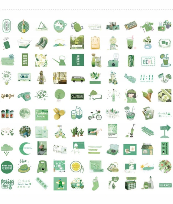 50 Sztuk Zestaw Vsco Girl Cartoon Zielone Naklejki Zabawki Dla
