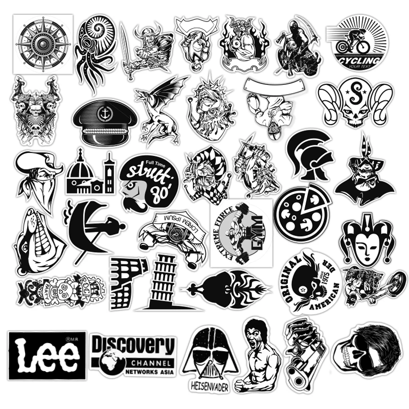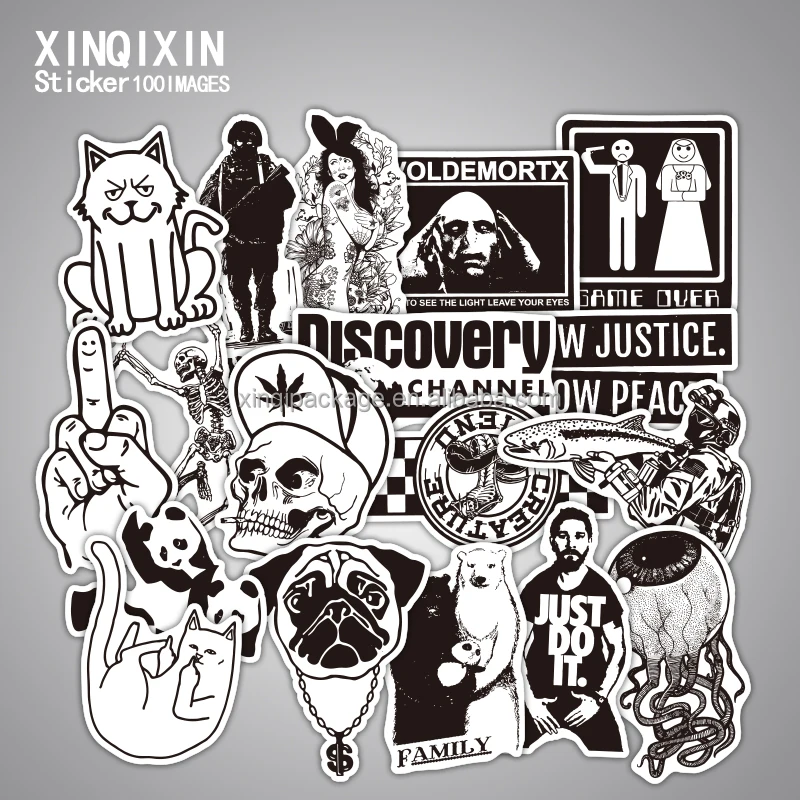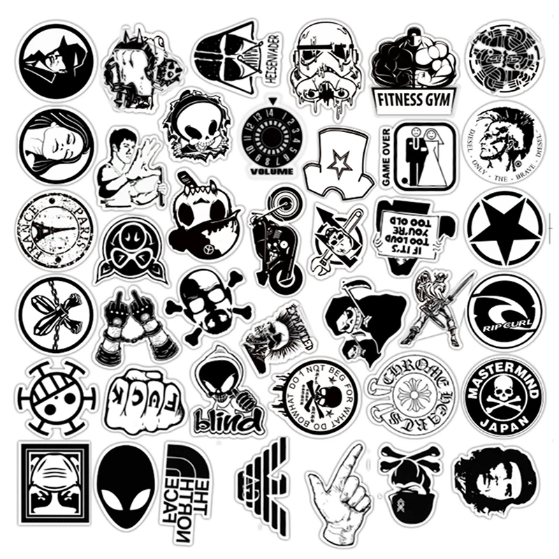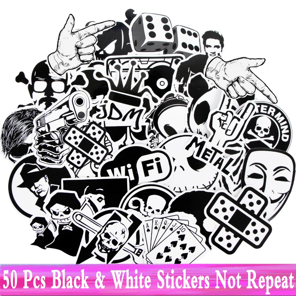 50 Pcs In Bianco E Nero Adesivi Divertente Del Vinile Del