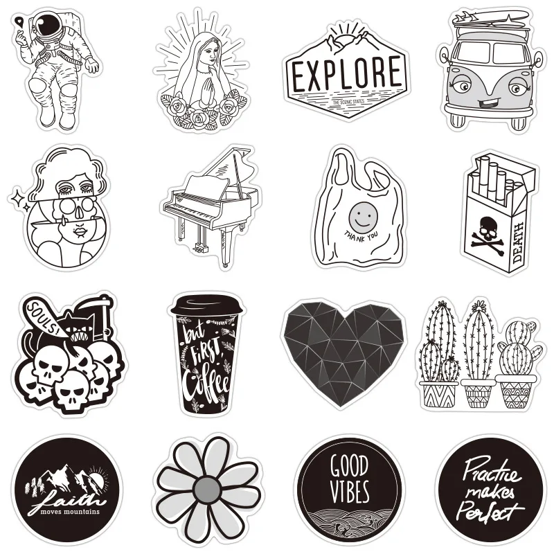 Vanmaxx 50 Pcs Black And White Vsco Ins Style Stickers Waterproof