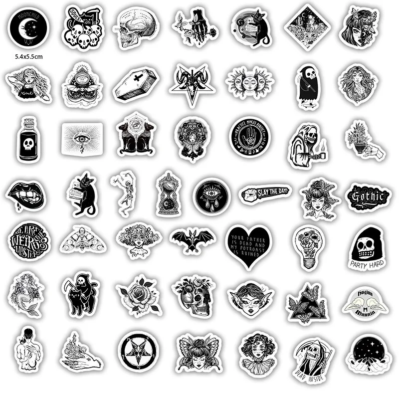 Td Zw 50pcsmixture Adesivi In Bianco E Nero Classico Vsco Sticker