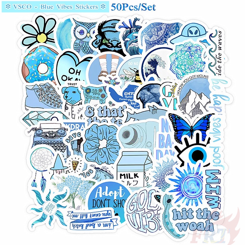 Vsco Blue Vibes Stickers 50pcs Set Fashion Diy Decals