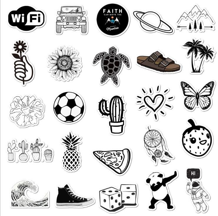 50 Pcs Dos Desenhos Animados Preto E Branco Vsco Adesivos Para
