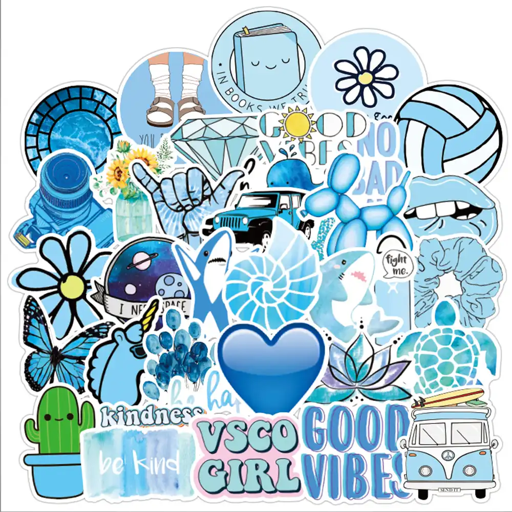 50 Lots Of Classic Vsco Girl Supplies Blue Cool Waterproof