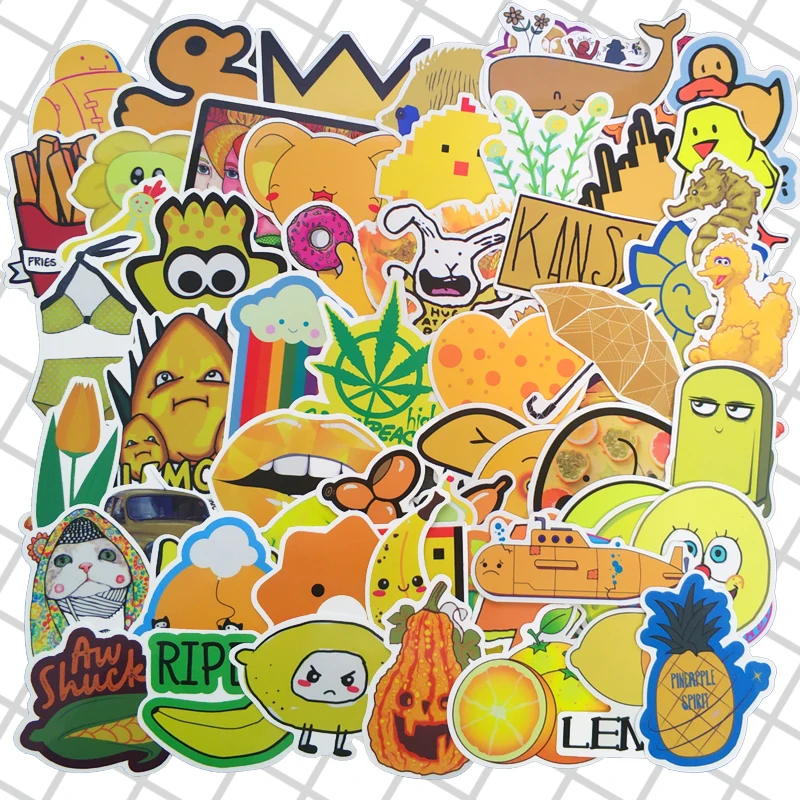 50pcs Yellow Stickers For Hydro Flask Vsco Girl Graffiti Stickers