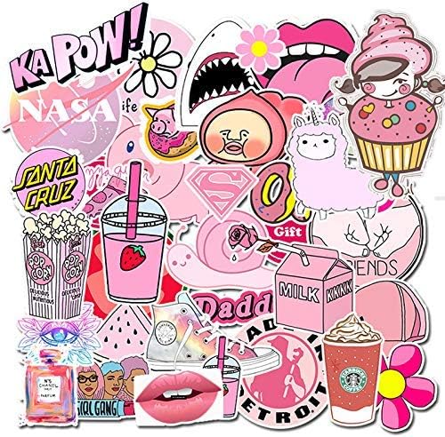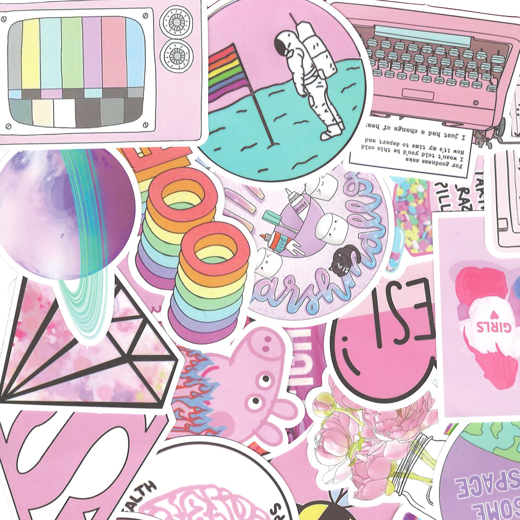 50 Pcs Pink Cute Girl Vsco Stickers For Luggage Laptop Decal