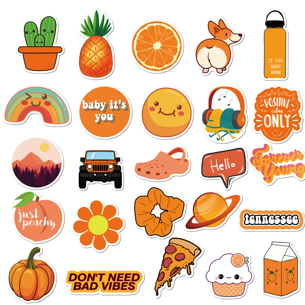 50 Pcs Cartoon Orange Vsco Girl Stickers For Chidren Toy