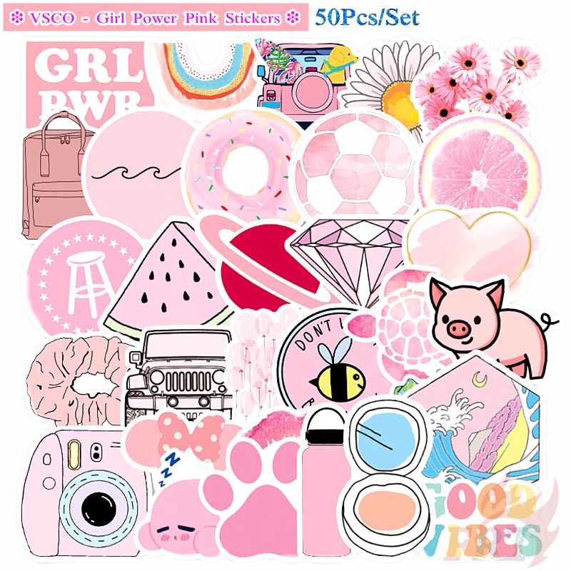 Vsco Girl Power Pink Stickers 50pcs Set Fashion Diy Mixed