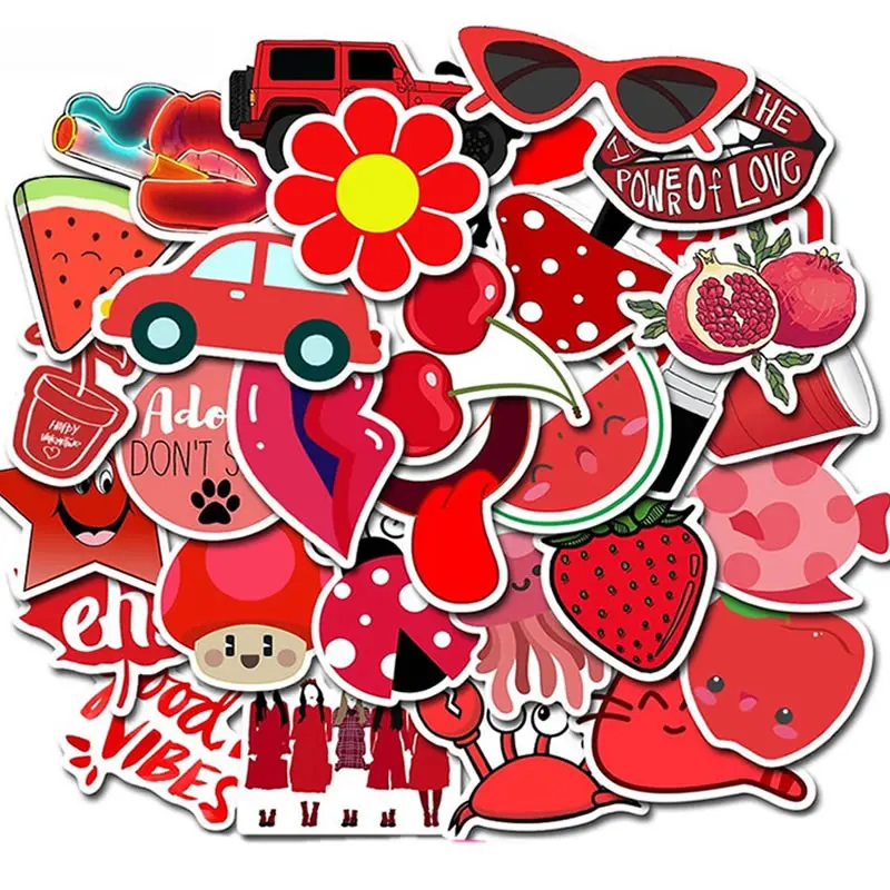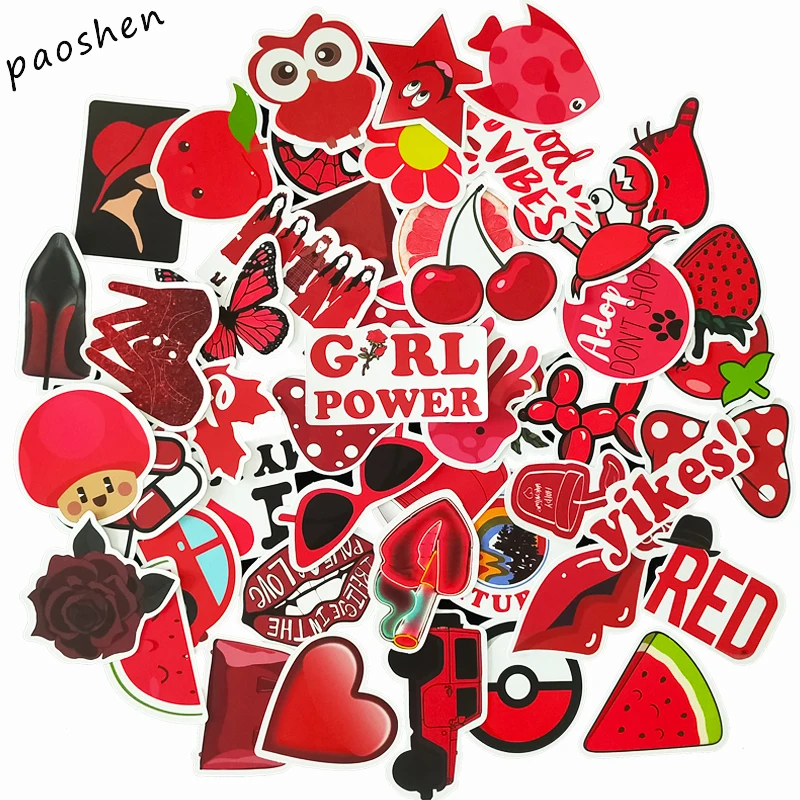 50pcs Pack Red Vsco Girl Waterproof Stickers Skateboard Suitcase