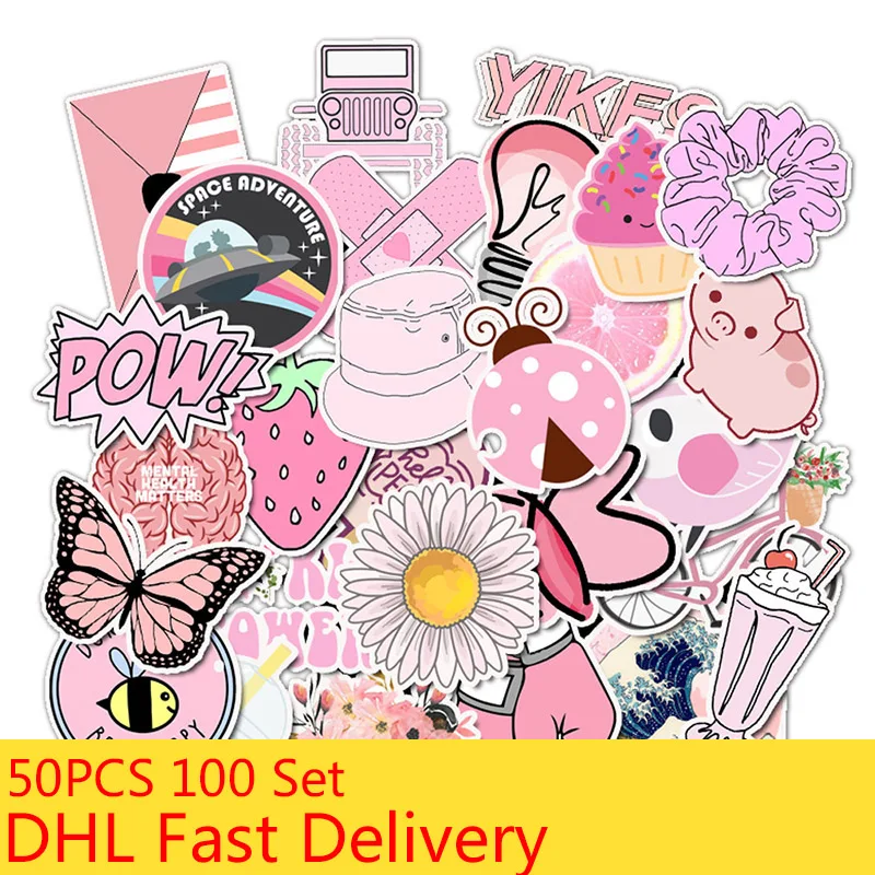 50pcs One Pack 100 Set Stickers Pink Simple Girl Vsco Sticker For