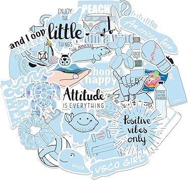 Amazon Com 50pcs Vsco Blue Sticker Hydro Clear Stickers Unique