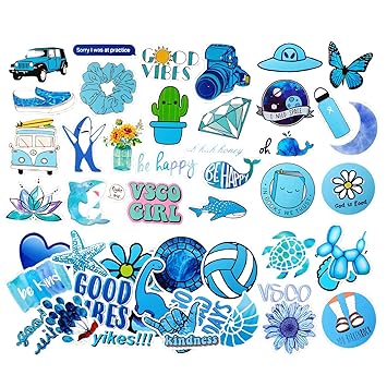 Amazon Com Vsco Stickers For Hydro Flask 100pcs Blue Waterproof