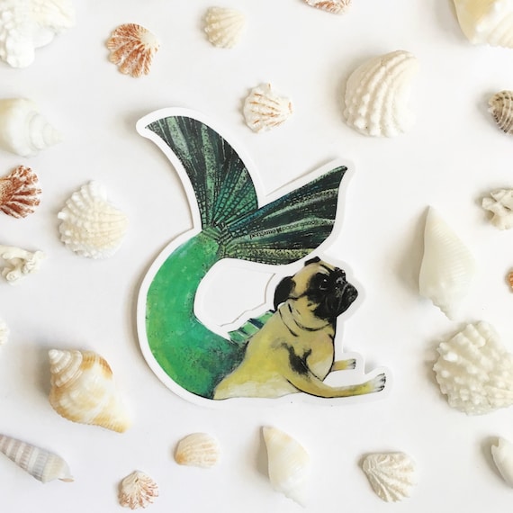 Mermaid Pug Sticker Mermaid Dog Sticker Vsco Vinyl Sticker Etsy