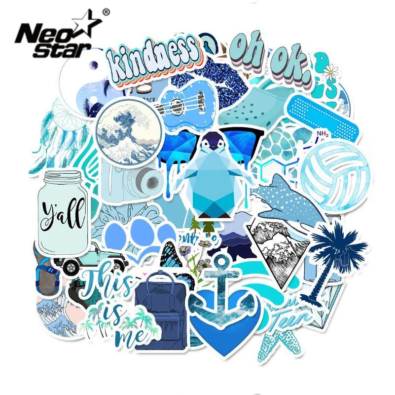 Neo Star 50pcs Blue Vsco Sticker For Laptop Cartoon Waterproof