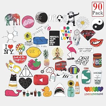 Cute Stickers 91 Pcs Laptop Water Bottle Decal Waterproof Sticker