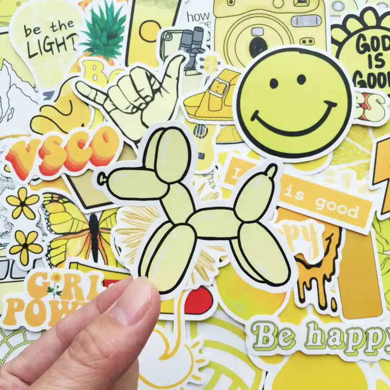 50 Pcs Yellow Vsco Stickers Water Bottles Cute Aesthetic Trendy