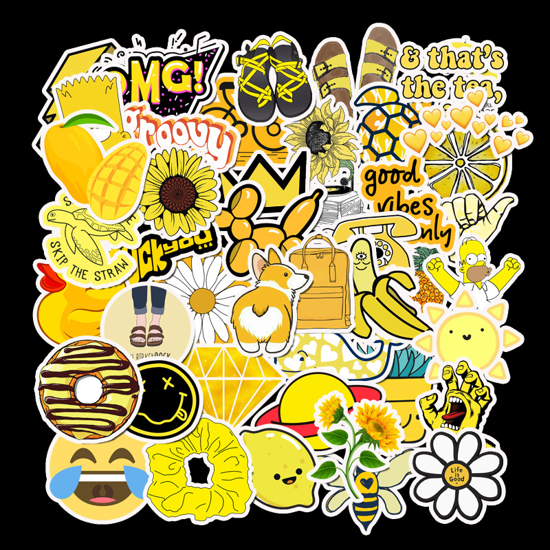 50 Pcs Cartoon Yellow Vsco Stickers For Chidren Toy Waterproof