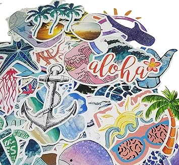 50 Pack Cute Ocean Beach Vsco Stickers For Water Bottles