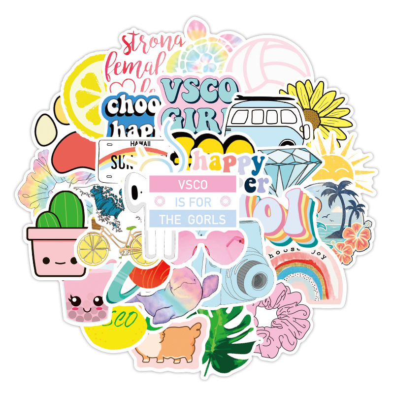 50pcs Lot Colorful Vsco Stickers Hydro Flask Water Bottle Vinyl